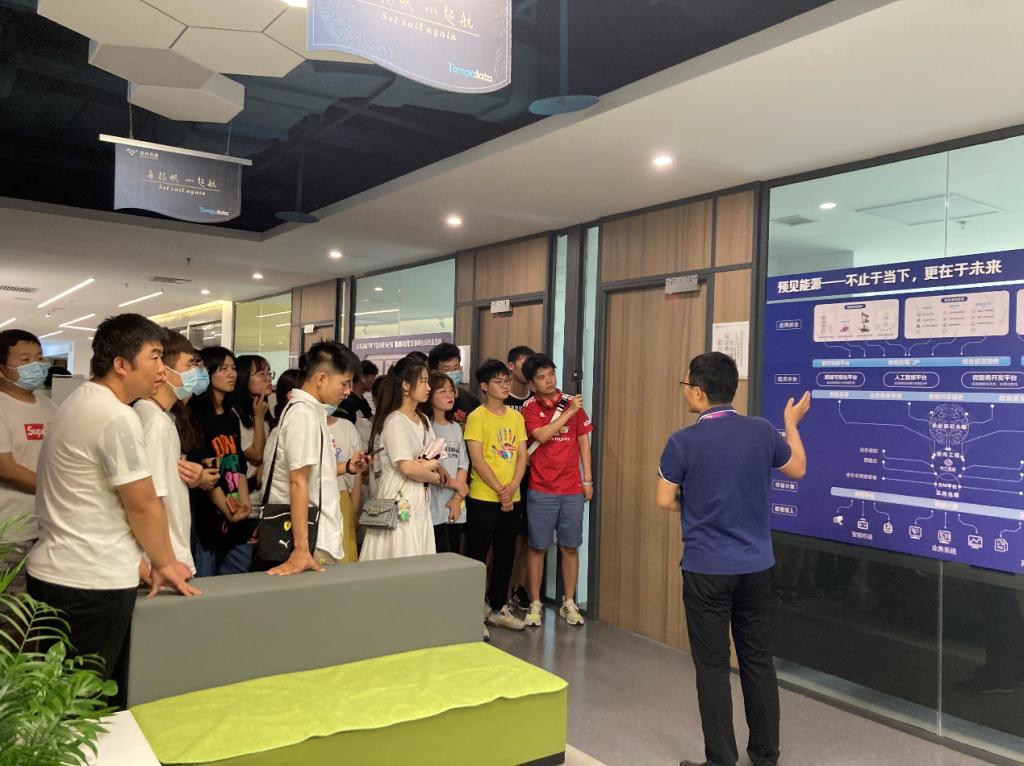 隨后,公司區(qū)域總監(jiān)楊東濤帶領(lǐng)大家參觀了美林?jǐn)?shù)據(jù)的科技展廳,楊總監(jiān)引用習(xí)近平總書記的話“推進(jìn)互聯(lián)網(wǎng)、大數(shù)據(jù)、人工智能同實(shí)體經(jīng)濟(jì)深度融合,推進(jìn)制造業(yè)產(chǎn)業(yè)模式和企業(yè)形態(tài)根本性轉(zhuǎn)變,促進(jìn)我國(guó)產(chǎn)業(yè)邁向全球價(jià)值鏈中高端”,進(jìn)一步向同學(xué)們說(shuō)明了大數(shù)據(jù)發(fā)展的重要性和必要性,并就“如何通過(guò)技術(shù)和能力提升自己”與同學(xué)們進(jìn)行了交流探討。