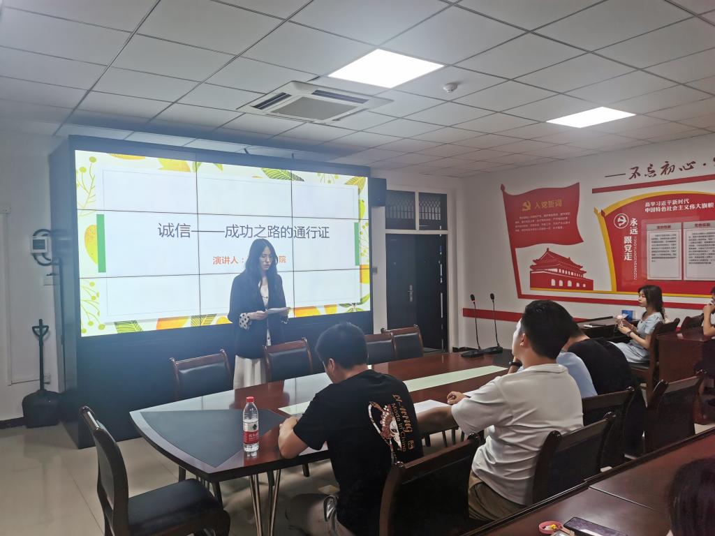本次活動分為誠信主題演講、勵志成才報告、觀看反詐騙校園行安全教育短片三個環(huán)節(jié)。首先,各位研究生參賽選手參照“砥礪誠信品格 揚帆誠信人生”主題,結(jié)合自身經(jīng)歷,旁征博引,引導(dǎo)大家牢固樹立誠信意識,恪守學(xué)術(shù)道德,堅守學(xué)術(shù)誠信,積極踐行誠實守信的道德觀念。
