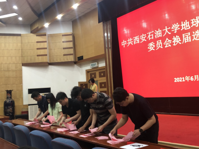 換屆大會在莊嚴的國歌聲中拉開帷幕。首先,馬行天同志代表學院黨委作了題為《凝心聚力 開拓進取 為開創(chuàng)學院發(fā)展的新局面而奮斗》的工作報告。報告回顧了學院黨委五年來開展的工作、取得的成績及存在的不足,并提出了今后的工作重點和努力方向。接下來,學院黨委專職組織員張陽作《關于黨費收繳、使用和管理情況的報告》。學院黨委副書記王瑩宣讀了《關于中共西安石油大學地球科學與工程學院新一屆委員會候選人的批復》。馬行天書記介紹了候選人情況。選舉工作嚴格按照選舉程序,舉手表決通過了《地球科學與工程學院委員會黨員大會選舉辦法舉辦法》、新一屆學院黨委委員候選人名單及監(jiān)票人、計票人名單。學院全體正式黨員采用差額選舉辦法無記名投票選舉產(chǎn)生了新一屆地球科學與工程學院黨委委員。