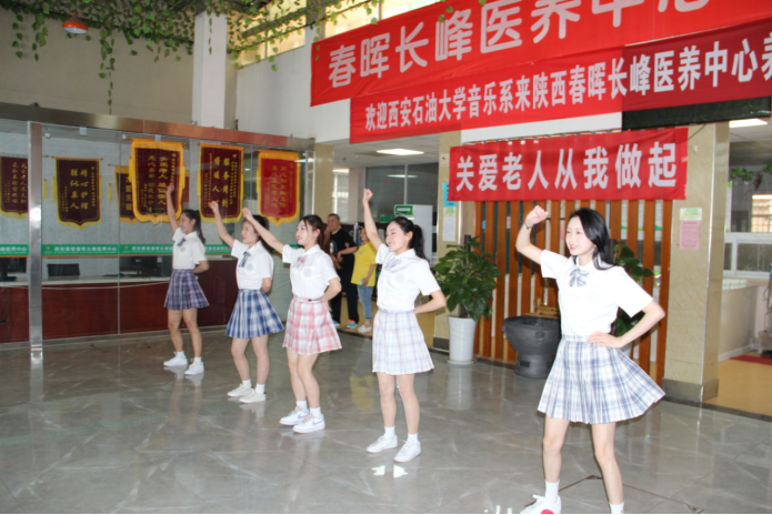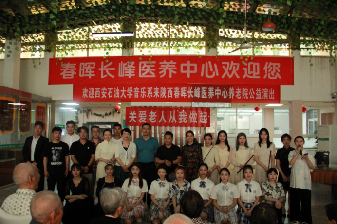 5月28日,音樂系組織學生黨員赴春暉長峰醫(yī)養(yǎng)中心養(yǎng)老院進行進社區(qū)公益演出。本場演出由何云老師精心編排,相關(guān)專業(yè)老師精心指導學生排練演出節(jié)目,經(jīng)過師生聯(lián)手演繹,為春暉長峰養(yǎng)老院的老人們呈現(xiàn)了一場繽紛多彩的公益演出。音樂系黨總支書記孟開元,教工黨員代表5人參加了本次公益活動。