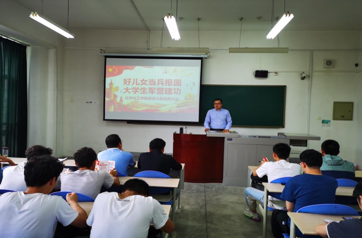 為積極響應(yīng)國(guó)家征兵號(hào)召,加強(qiáng)征兵政策宣傳,做好2021年高校大學(xué)生應(yīng)征入伍工作,化學(xué)化工學(xué)院于2021年5月26日中午在鄠邑校區(qū)A219教室舉辦2021年征兵入伍動(dòng)員大會(huì),本次動(dòng)員大會(huì)邀請(qǐng)了校武裝部武裝專(zhuān)干馬博峰、高陽(yáng)老師做了2021年征兵入伍專(zhuān)題報(bào)告,化學(xué)化工學(xué)院黨委副書(shū)記祁帆、學(xué)生工作辦公室主任屈敏佳、我院學(xué)工干部及有征兵意向的各年級(jí)同學(xué)共50余人參加本次動(dòng)員大會(huì)。會(huì)議由化學(xué)化工學(xué)院學(xué)生辦公室主任屈敏佳主持。
