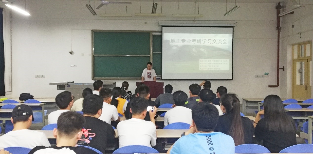 2021520日下午七點(diǎn)在B102教室,地工專業(yè)學(xué)生第二黨支部王柳、周璐、張海濤、門歡同學(xué)進(jìn)行了考研學(xué)習(xí)經(jīng)驗(yàn)交流,地工專業(yè)27位同學(xué)參加。