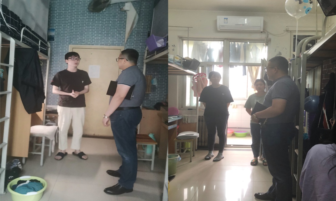 ——深入走訪環(huán)節(jié)。5月11日至14日,學(xué)院黨委副書記祁帆帶隊,深入走訪畢業(yè)班學(xué)生宿舍,了解學(xué)習(xí)畢業(yè)設(shè)計進(jìn)展、就業(yè)進(jìn)展及學(xué)習(xí)生活近況,認(rèn)真排查宿舍安全隱患。祁帆副書記在宿舍走訪中,就不同群體、不同類別的畢業(yè)生進(jìn)行分類指導(dǎo),提出要求期盼。對于未就業(yè)學(xué)生,要樹立“先就業(yè)、后擇業(yè)”的正確理念,鼓勵學(xué)生報名“科研助理崗位”;已就業(yè)同學(xué),希望在工作崗位上勤奮有為、建功立業(yè),為學(xué)校爭光,為家庭爭氣;考研已錄取學(xué)生要志存高遠(yuǎn),繼續(xù)保持學(xué)習(xí)勁頭,用好研究生平臺,提升科研水平,涵養(yǎng)學(xué)術(shù)素養(yǎng)。最后,祁帆副書記強(qiáng)調(diào),畢業(yè)班是學(xué)院學(xué)風(fēng)建設(shè)的“風(fēng)向標(biāo)”和“排頭兵”,畢業(yè)生是低年級同學(xué)的榜樣標(biāo)桿,在離開學(xué)校象牙塔走向社會大舞臺的過程中肩負(fù)光榮使命,要志存高遠(yuǎn),把個人發(fā)展融入社會、國家發(fā)展之中。各年級輔導(dǎo)員帶領(lǐng)團(tuán)學(xué)干部先后開展年級宿舍安全衛(wèi)生大檢查工作。