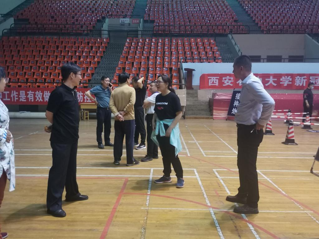 根據(jù)雁塔區(qū)和鄠邑區(qū)衛(wèi)健局疫情防控指揮部要求,我校新冠疫苗接種點5月啟用新的預(yù)約系統(tǒng),全面推進(jìn)學(xué)校疫苗接種工作,校醫(yī)院接到通知后立即行動,召開科主任和全院職工大會,研究落實新冠疫苗雁塔和鄠邑兩個校區(qū)場地布置和接種工作,主管副校長蘇文甫親自到新冠疫苗接種現(xiàn)場安排疫苗接種工作。在學(xué)校疫情防控工作領(lǐng)導(dǎo)小組辦公室、國有資產(chǎn)處、后勤管理處、信息中心、保衛(wèi)處等部門的通力合作下,僅僅一天時間全部完成了在雁塔校區(qū)體育館的新冠疫苗接種點的場地、物資、網(wǎng)絡(luò)等準(zhǔn)備工作。蘇文甫副校長及校醫(yī)院領(lǐng)導(dǎo)對新冠疫苗接種場地準(zhǔn)備工作進(jìn)行了詳細(xì)地檢查和指導(dǎo),并提出了寶貴的整改建議,確保全校新冠疫苗新的預(yù)約系統(tǒng)接種工作順利有序地進(jìn)行。