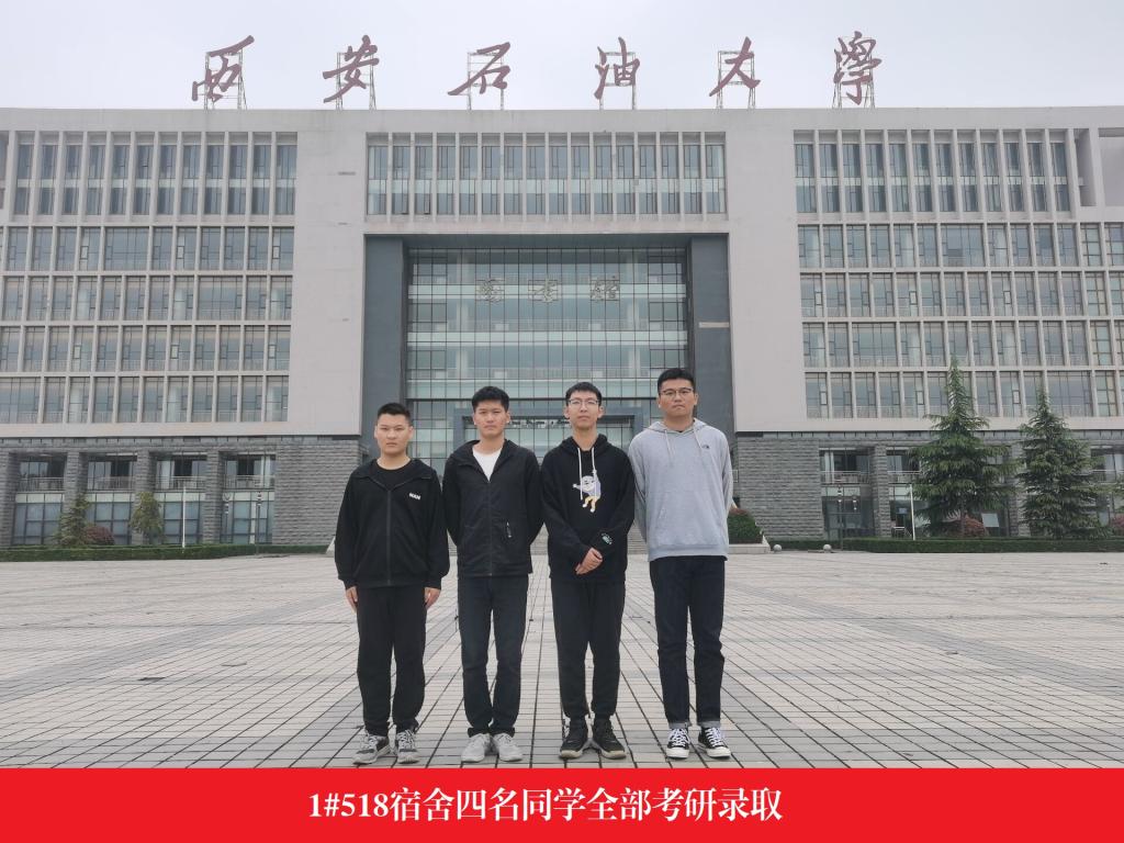 在諸多優(yōu)秀學子中,1#518宿舍的四位同學全部被考研錄取,格外引人注目。該宿舍劉迎澳、劉峰同學被西安電子科技大學錄取,陳偉同學被華南師范大學錄取,萬希智同學被西安工業(yè)大學錄取,宿舍四人全員上岸,“學霸”宿舍,實至名歸。1#518的宿舍四名同學在日常學習中刻苦努力,積極參與學術競賽,多次獲得國家獎學金、品學兼優(yōu)獎學金等榮譽。在考研期間互相監(jiān)督,彼此鼓勵,每天晚上在宿舍分享今日備考遇到的問題或發(fā)現的知識漏洞。最終,一路相伴,“研”途圓夢。