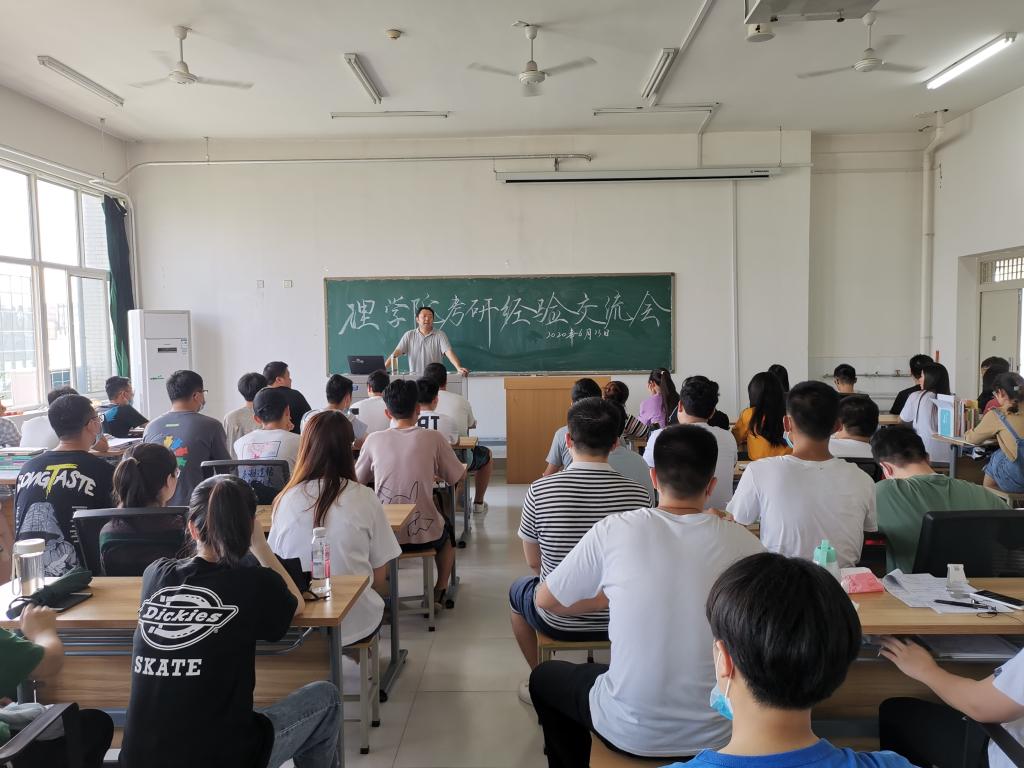 理學院以考研就業(yè)為導向,不斷為學生成長成才助力,為夢想加油。在入學之初,學院便強調學無止境,勇攀高峰,在新生心中埋下考研深造的種子。進入高年級,學院定期召開考研動員會,幫助學生堅定考研信念。同時,分專業(yè)、分階段扎實開展考研經驗交流會,從備考到應試,全方位為學生提供考研指導。輔導員丁亦喆精準施策,積極為學生提供考研自習室、考研交流群,考研“一對一”交流等服務。黨委副書記馬小剛在學生考研復試的過程中堅持一對一談話、一對一指導,幫助學生實現考研目標。在考研前夕,學院領導帶領全體輔導員為學生加油打氣,發(fā)放“考研禮包”,召開座談會,為考研學子送上貼心鼓勵,殷殷寄語。