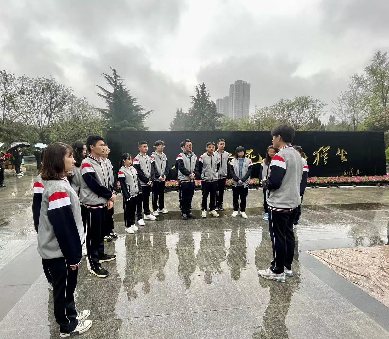 翠柏凝春,青松競秀,蒙蒙細雨中的烈士陵園更顯莊嚴肅穆。早八時許,在2018級輔導員張靚、2019級輔導員邱迪的帶領(lǐng)下,本次新發(fā)展的十六黨員代表齊聚在紀念碑前,共同學習黨史,緬懷革命英烈。