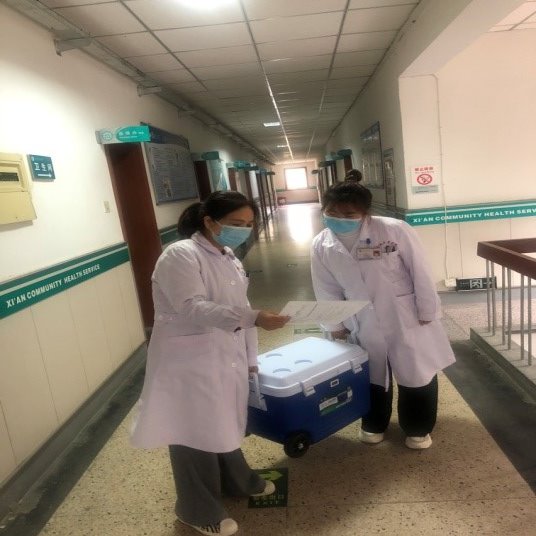 醫(yī)務(wù)人員轉(zhuǎn)送新冠肺炎疫苗