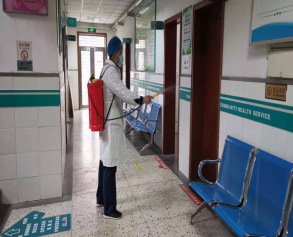 工作人員做好疫苗接種場地消殺準(zhǔn)備工作