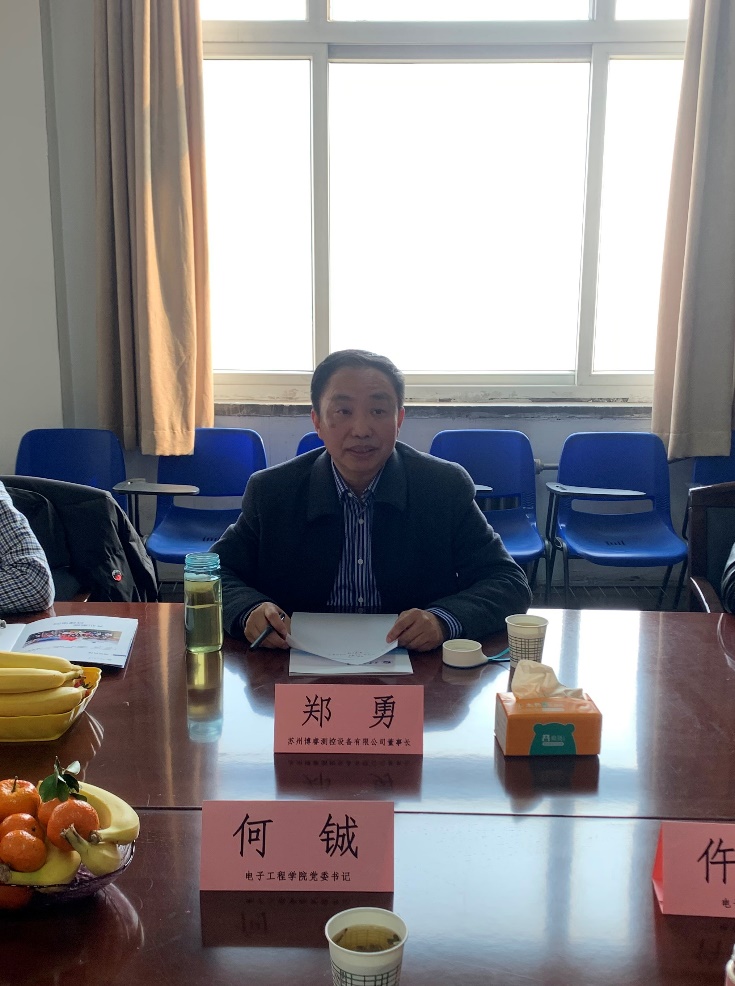 蘇州博睿測控設(shè)備公司鄭勇董事長一行回電子工程學(xué)院交流座談