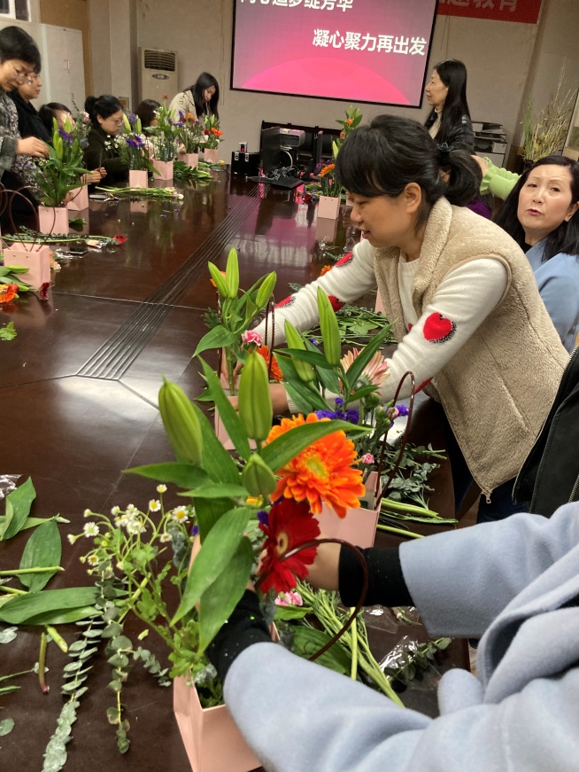 三月,春意漸濃、萬物復(fù)蘇。為進一步激發(fā)女教工的工作及生活熱情,充分展示我館女教工的優(yōu)雅風(fēng)采,圖書館于三八國際婦女節(jié)來臨之際,開展了以“同心追夢綻芳華,凝心聚力再出發(fā)”為主題的“女神節(jié)”慶祝活動。近30位女教工共同體驗了高雅的插花藝術(shù),用巧手制造美麗、用鮮花裝扮節(jié)日。