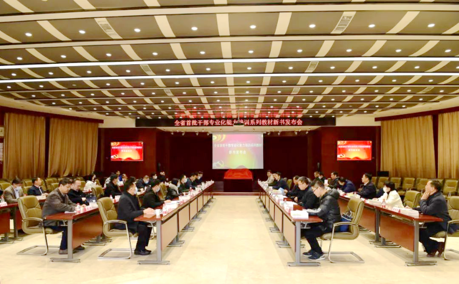近日,全省首批干部專業(yè)化能力培訓系列教材新書發(fā)布會在西北大學舉行。省委組織部一級巡視員郭文超、全省各市(區(qū))委組織部及全省各高校培訓機構負責人、教材主編等同志參加新書發(fā)布會,會議由省委組織部干教處處長馬亮主持。