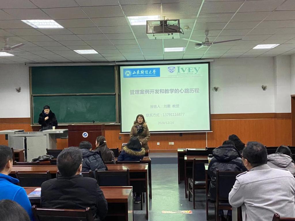 12月24日上午,山東財經(jīng)大學(xué)工商管理學(xué)院教授、加拿大西安大略大學(xué)毅偉商學(xué)院兼職教授、魯商案例研發(fā)中心主任劉素教授在2號教學(xué)樓東階201教室作了題為《管理案例開發(fā)和教學(xué)的心路歷程》的學(xué)術(shù)報告。主管研究生教學(xué)工作的李俊亭副院長主持了報告會,王君萍院長和經(jīng)濟管理學(xué)院專業(yè)碩士指導(dǎo)教師等近30人參加。