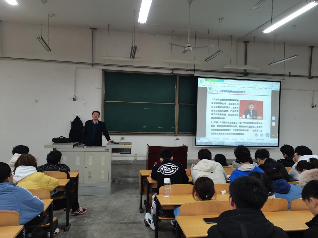 12月22日下午4時,石油工程學(xué)院于鄠邑校區(qū)B321教室舉辦石工論壇系列講座——《陜西省地?zé)崮荛_發(fā)利用進(jìn)展》,特別邀請到陜西省水工環(huán)地質(zhì)調(diào)查中心黨委書記鈔中東老師主講。本次講座由新能源科學(xué)與工程專業(yè)系主任楊昌華教授主持,學(xué)院黨委副書記張建高、能科系副主任余華貴、能科系教師羅向榮、高千、王洋及全體能科專業(yè)120余名學(xué)生參加此次講座。