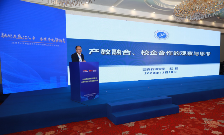 我校學生工作部部長、就業(yè)指導中心主任趙健應邀在會上做了《產(chǎn)教融合、校企合作的觀察與思考》的主題演講。他圍繞“十三五”期間我國產(chǎn)教融合、校企合作的發(fā)展態(tài)勢,總結(jié)回顧了我國產(chǎn)教融合政策體系構(gòu)建、普通高等教育和職業(yè)教育的發(fā)展、產(chǎn)教融合和校企合作方面的亮點,結(jié)合地方本科院校的定位于特點,分析了現(xiàn)階段產(chǎn)教融合領域存在的薄弱環(huán)節(jié),提出了“十四五”期間政府、高校、企業(yè)深化產(chǎn)教融合,構(gòu)建協(xié)同育人網(wǎng)絡體系的對策建議,并簡要介紹了我校發(fā)展建設概況和畢業(yè)生就業(yè)工作,對我校2021屆畢業(yè)生進行了現(xiàn)場推介。主旨報告受到了與會代表的一致好評。