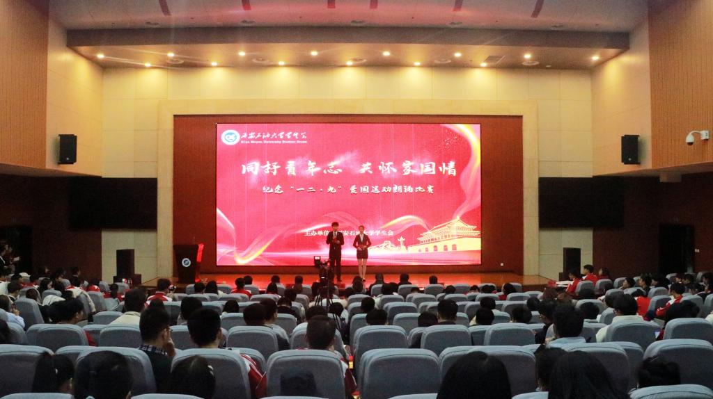 12月9日晚,由校學(xué)生會(huì)主辦的“同抒青年志,共懷家國(guó)情”紀(jì)念“一二·九”愛國(guó)運(yùn)動(dòng)朗誦比賽在鄠邑校區(qū)弘石學(xué)術(shù)報(bào)告廳成功舉辦。各院系團(tuán)委書記、鄠邑校區(qū)300余名同學(xué)到場(chǎng)觀看。