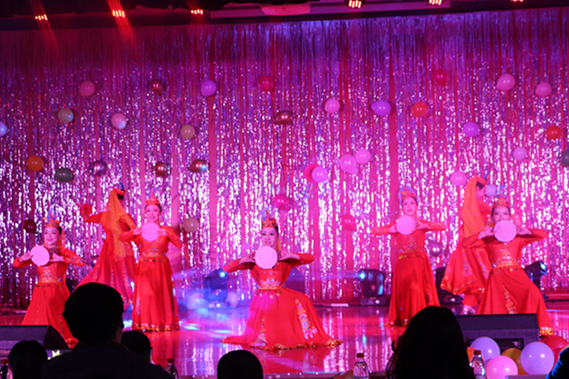 晚會表演環(huán)節(jié)中,校工會舞蹈隊為大家表演了精彩的新疆民族舞蹈《歡樂鈴鼓》,美輪美奐。宜涌濤主管代表四川越盛長慶分公司為大家獻唱了陜北民歌《一搭搭里》,高亢激昂,校工會和企業(yè)代表的精彩節(jié)目一度將晚會推向高潮。