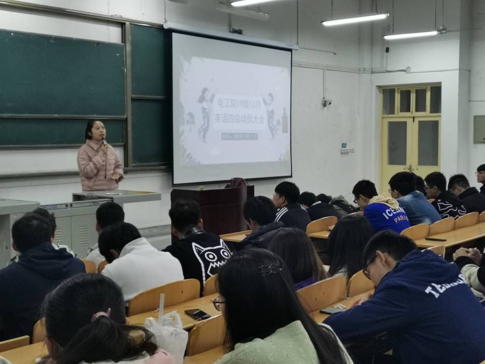 為助力同學(xué)們在今年12月份的全國大學(xué)生英語四級考試中取得優(yōu)異成績,提高我院英語四級通過率,電子工程學(xué)院2019級英語四級學(xué)習(xí)小組在輔導(dǎo)員沈軒羽老師的指導(dǎo)下,開展了英語四級強(qiáng)化班、英語四級動員大會、四級線下模擬考等一系列英語四級強(qiáng)化工作。2020112718:10,電子工程學(xué)院2019級在西安石油大學(xué)鄠邑校區(qū)B區(qū)教學(xué)樓112教室舉行了四級沖刺動員大會,我院2019級輔導(dǎo)員沈軒羽老師以及220余名即將參加12月英語四級考試的學(xué)生參加了此次動員大會。此處大會旨在鼓勵學(xué)生積極備戰(zhàn)12月的英語四級考試,在有限的時間內(nèi)更好的安排學(xué)習(xí)備考計(jì)劃。