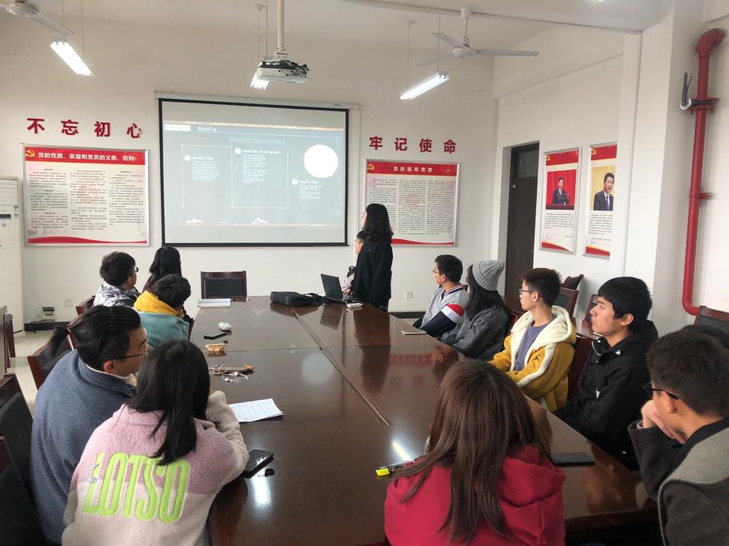 會上,來自2018級和2019級的四名學生做學習分享。孫越同學通過實例從為什么要學習社會科學知識,怎么學習社科知識與大家進行了探討。李瑞杰同學就自己最近的讀書心得與大家進行了分享。劉鈺晨和吳怡樂兩名同學利用英文完成了本次演講,其中劉鈺晨從專業(yè)出發(fā),對低年級的同學就碳酸鹽巖的成分、結構特征等方面進行了介紹,吳怡樂結合自身四級復習心得,從聽力、閱讀、寫作、翻譯四個方面向同學們分享了四級復習技巧。最后杜蕾老師對四位同學的PPT制作及現(xiàn)場表達進行了點評,并鼓勵同學們繼續(xù)努力,做好不同階段的學習規(guī)劃,認真完成日常學習任務。