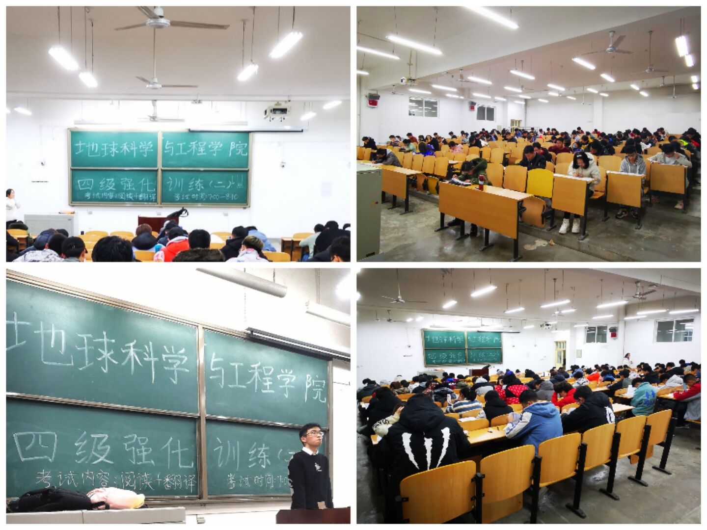 2020年11月24日晚19:00,地球科學與工程學院在B214和221教室舉行第二輪四級模塊化測試。學院大二、大三年級共200余名學生參加,學工干部監(jiān)考。