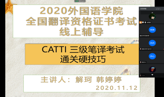 外國語學(xué)院舉辦全國翻譯資格證書(CATTI)三級筆譯考試線上輔導(dǎo)講座