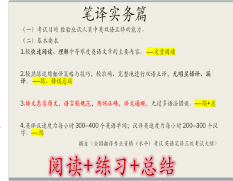 本次講座的主題為“CATTI三級筆譯考試通關(guān)硬技巧”。講座的主要內(nèi)容包括筆譯實務(wù)如何備戰(zhàn),筆譯綜合能力如何夯實以及復(fù)習(xí)工具書、參考書和公眾號推薦。