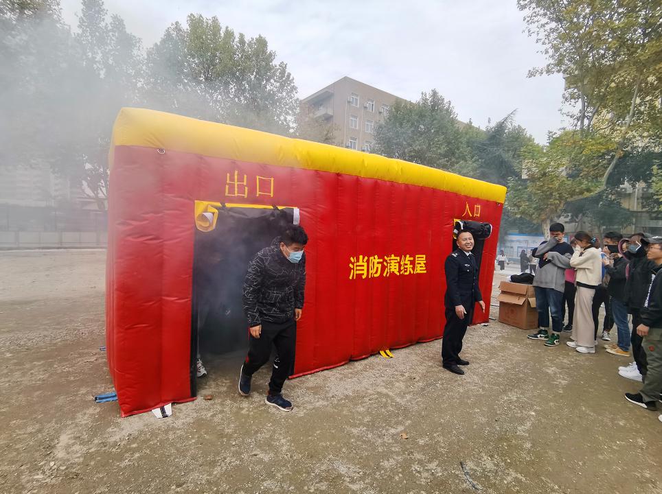 消防安全知識講座上,陜西省安居消防中心何海立教官也從實(shí)際案例出發(fā),生動(dòng)的講授了防火、滅火、自救等消防安全知識。講座后,在何教官與保衛(wèi)處工作人員的指揮指導(dǎo)下,研究生同學(xué)們來到戶外參與現(xiàn)場演練,學(xué)習(xí)手提式滅火器的使用和模擬火場逃生,為災(zāi)中自救做好了能力儲(chǔ)備。