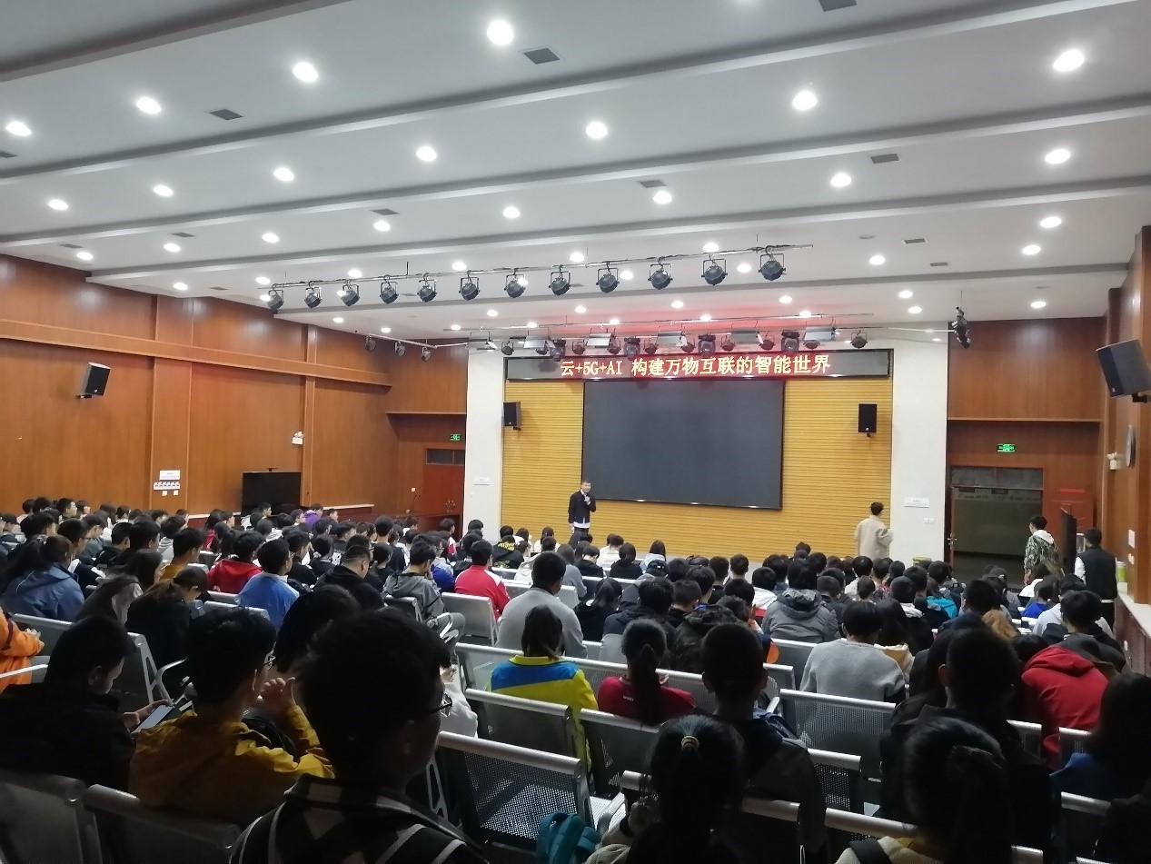 11月3日晚,計算機學院邀請華為云開發(fā)者生態(tài)運營師趙杰在鄠邑校區(qū)經管人文樓118室舉辦題為“云+5G+AI構建萬物互聯的智能世界”的學術報告會,輔導員王天航、劉亭普及200余名學生參加。