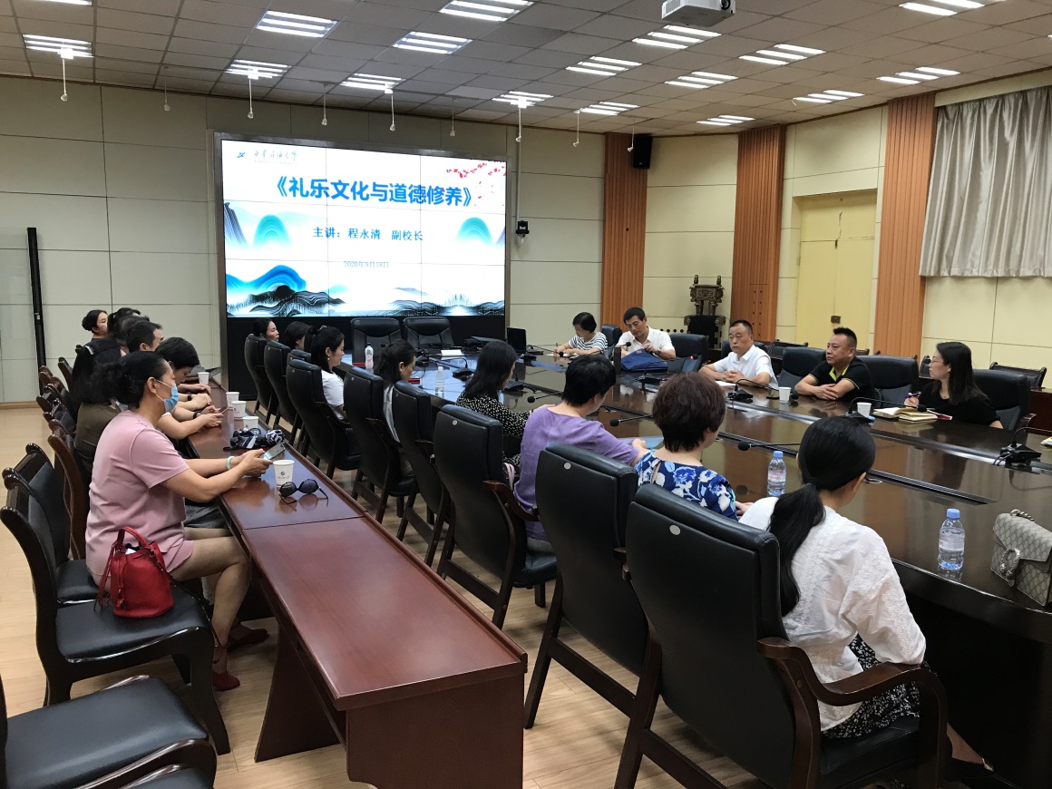 會(huì)上,副校長程永清作了題為《禮樂文化與道德修養(yǎng)》的專題講座。程校長分別從禮樂文化的內(nèi)涵、禮樂的作用和重要的意義以及道德的概念和提高修養(yǎng)的方法和途徑等方面對禮樂文化、禮樂與道德之間的關(guān)系進(jìn)行了深刻詳細(xì)的解讀。程校長提出:一方面要加強(qiáng)學(xué)習(xí),把學(xué)習(xí)作為一種追求、愛好和健康的生活方式,做到好學(xué)樂學(xué);另一方面要以革新的姿態(tài)、發(fā)展的眼光,及時(shí)更新知識(shí)儲(chǔ)備,積極關(guān)注社會(huì)現(xiàn)實(shí),真正做到與時(shí)俱進(jìn)。