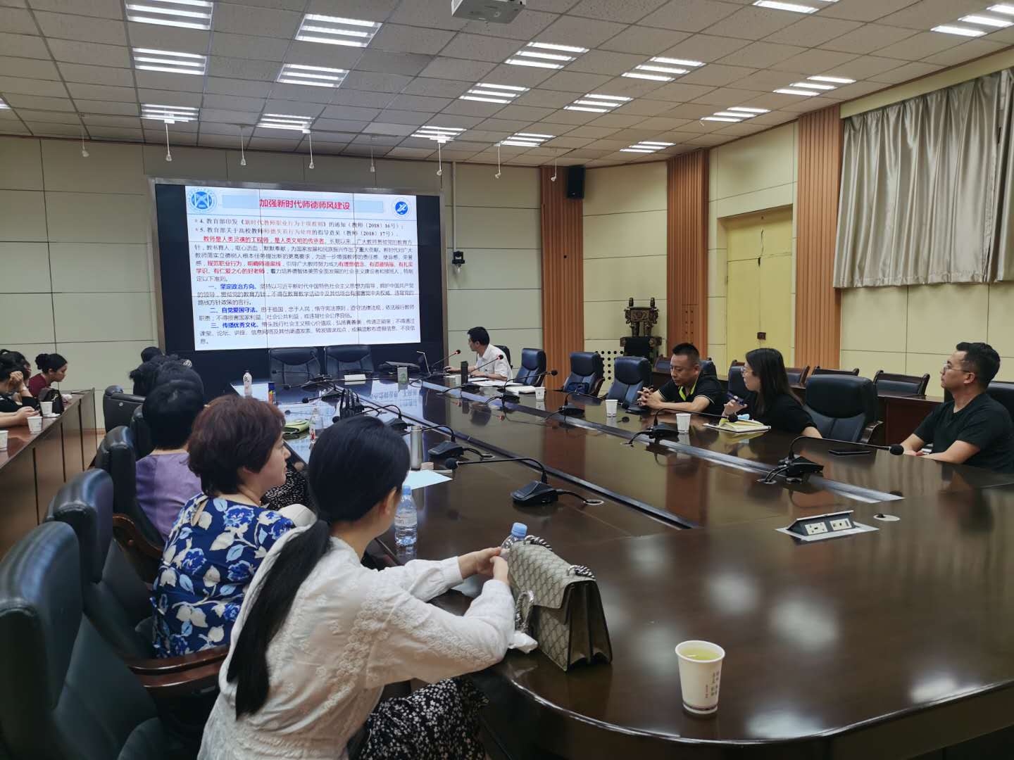 孟書記領(lǐng)學(xué)了《中華人民共和國教師法(2009年修正)》《關(guān)于加強(qiáng)和改進(jìn)新時(shí)代師德師風(fēng)建設(shè)的意見》的通知(教師〔2019〕10號)》《新時(shí)代愛國主義教育實(shí)施綱要》等文件精神。孟書記強(qiáng)調(diào),希望大家不忘育人初心,牢記教師使命,增強(qiáng)為黨育人、為國育才的思想自覺和行動(dòng)自覺,從自身做起,推動(dòng)系教風(fēng)學(xué)風(fēng)的發(fā)展,培養(yǎng)出更多合格的應(yīng)用型人才。