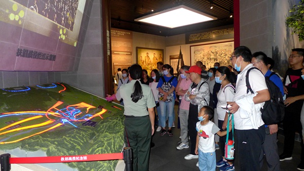 通過(guò)豐富真實(shí)的戰(zhàn)役歷史資料和講解員的系統(tǒng)介紹,配合聲、光、電等高科技,大家的腦海中似乎又重現(xiàn)了人民解放軍英勇戰(zhàn)斗的場(chǎng)面,尤其是紀(jì)念館陳列的戰(zhàn)旗、錦旗、獎(jiǎng)?wù)乱约袄U獲敵人的部分武器和報(bào)話器材等遺物,如二兵團(tuán)四軍十師師長(zhǎng)劉懋功、31團(tuán)團(tuán)長(zhǎng)王學(xué)禮、營(yíng)長(zhǎng)馬成林用過(guò)的望遠(yuǎn)鏡,戰(zhàn)斗英雄李珍吹過(guò)的軍號(hào),于建軍烈士曾經(jīng)用過(guò)的硯臺(tái),張遵吉烈士的家書(shū),武德彪等烈士用過(guò)的圖章,戰(zhàn)斗英雄張福來(lái)、李錫貴的立功證書(shū)和用過(guò)的軍毯、穿過(guò)的軍鞋等,讓大家更加深刻地體會(huì)到了革命戰(zhàn)爭(zhēng)年代解放軍戰(zhàn)士的英雄氣概和革命擔(dān)當(dāng),體會(huì)到了黨的戰(zhàn)略方針的英明、革命戰(zhàn)爭(zhēng)年代的艱辛和今天大好局面與幸福生活的來(lái)之不易。