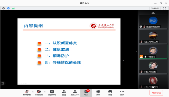 8月22至23日,學院“復學第一課”教育大會依托“騰訊會議”分年級在線上召開,各年級輔導員主持,學院黨政領導、系主任、班主任、專業(yè)骨干教師等30余人次應邀參會指導,全院近1100名本科生按時參會。按照學院統(tǒng)一的教育方案,結合各年級不同學習特點,“復學第一課”從疫情防控、請銷假制度執(zhí)行、學生公寓管理、晨午檢制度落實、穩(wěn)定安全排查等方面開展了專題教育,就考風考紀、學業(yè)警示、返校復課要求、思想動態(tài)調(diào)查等作講解和要求;30余名教師從疫情防控入手,就開學課業(yè)銜接、上課準備要求、四六級備考及考研復習等作了宣講動員。