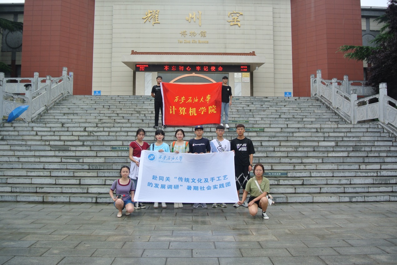 為了引導(dǎo)青年了解傳統(tǒng)文化,根據(jù)校團(tuán)委統(tǒng)一部署,8月1日至8月4日,西安石油大學(xué)計(jì)算機(jī)學(xué)院赴同關(guān)“傳統(tǒng)文化及手工藝的發(fā)展調(diào)研”暑期社會(huì)實(shí)踐團(tuán)隊(duì)由指導(dǎo)教師王天航帶領(lǐng)下,前往銅川開(kāi)展了為期四天的社會(huì)實(shí)踐活動(dòng)。
