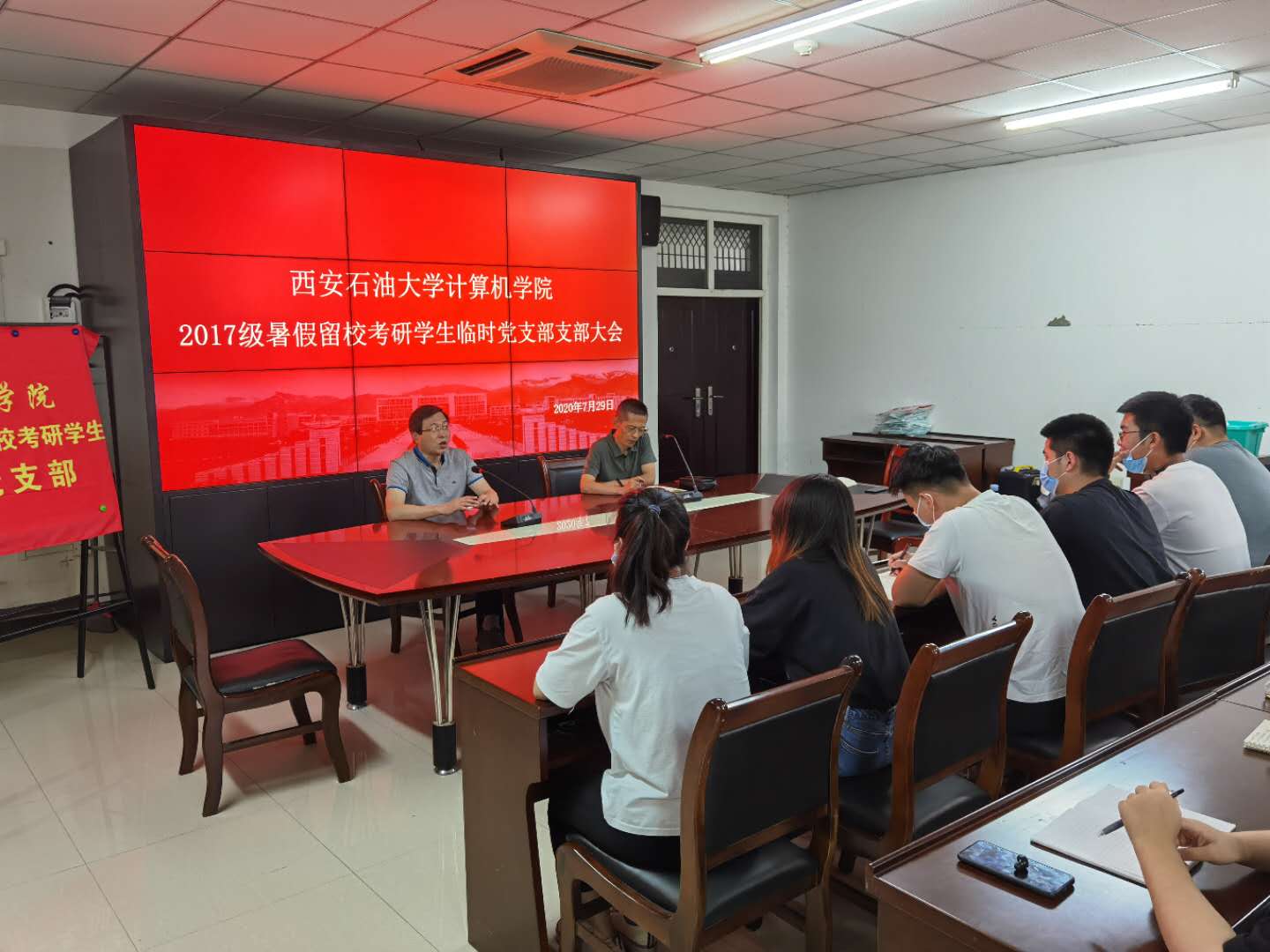 7月29日上午10點,計算機學院2017級暑期留??佳袑W生臨時黨支部在鄠邑校區(qū)C1樓112會議室召開黨員大會。計算機學院黨委書記蔡建文,黨委副書記董春詩,學院輔導員及21名留校黨員參加會議。
