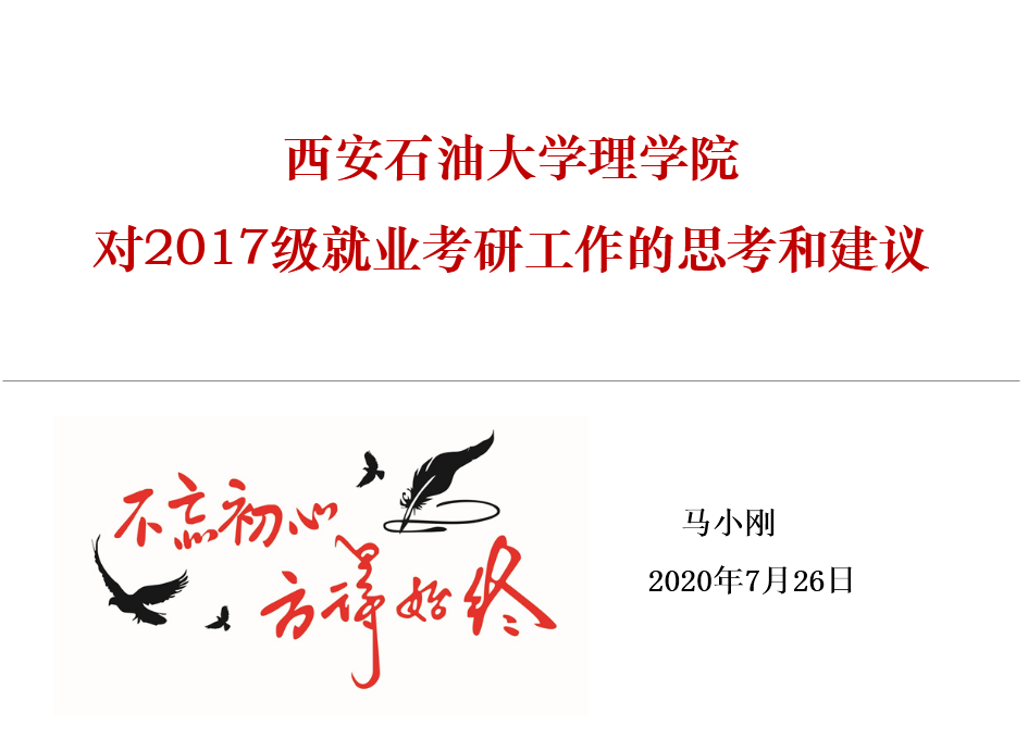 為切實抓住暑期備考黃金時期,有效增強學生考研信心,大力激發(fā)學生考研斗志,7月26日下午,理學院黨委副書記馬小剛、學生管理辦公室主任丁亦喆、輔導員康偉一行三人到鄠邑校區(qū)看望慰問暑期留??佳械?1名學子,馬小剛書記為全體留校同學作“不忘初心、方得始終——對2017級學生就業(yè)考研工作的思考和建議”專題講座。