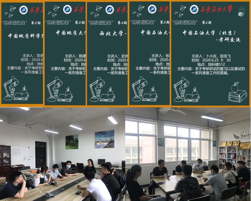 2020年6月22日——25日,地球科學與工程學院針對2017級考研學生,分西安石油大學、中國地質科學院、中國地質大學(北京)、西北大學、中國石油大學(華東)、中國石油大學(北京)、長安大學等七所目標院校,邀請2016級考研成功的同學分享經驗,一共舉辦七場考研交流活動。