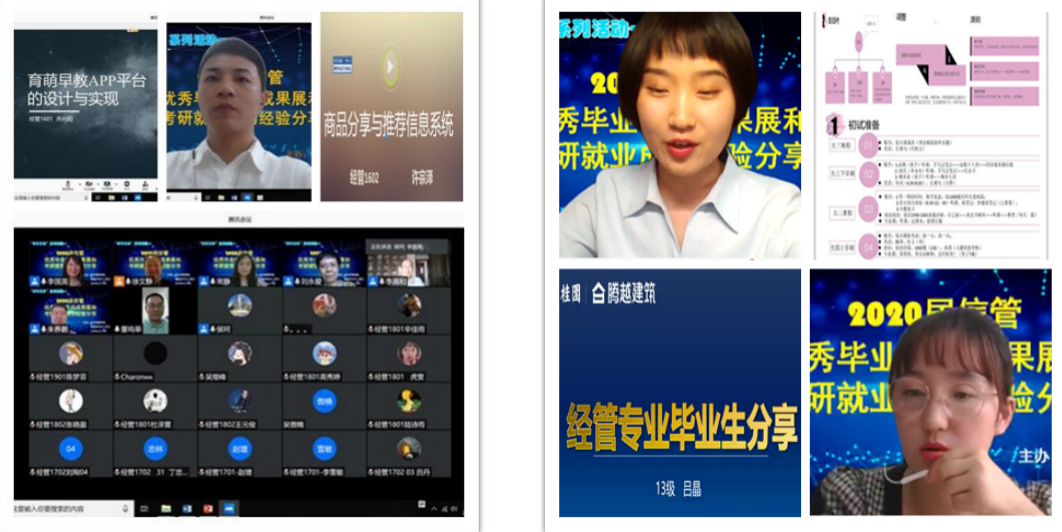 為了豐富“停課不停學”的線上教學活動,2020年6月15日下午14:30,經濟管理學院管理科學與工程系信息管理與信息系統(tǒng)專業(yè)利用騰訊會議開展了一次師生共享的成果交流會。參會人員不僅包括學院的老師、在讀本科生,還特別邀請了已經畢業(yè)的學生分享成功經驗,參會人數(shù)達200多人。