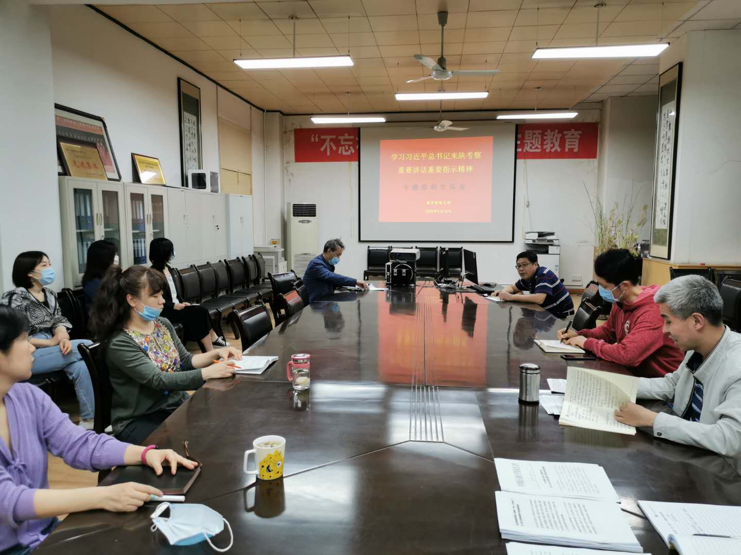 隨后由支部宣傳委員連宇江組織大家原文學(xué)習(xí)了新華社《習(xí)近平在陜西考察時強(qiáng)調(diào) 扎實(shí)做好“六穩(wěn)”工作落實(shí)“六保”任務(wù) 奮力譜寫陜西新時代追趕超越新篇章》和人民日報《“陜西要有勇立潮頭、爭當(dāng)時代弄潮兒的志向和氣魄》兩篇文章,隨后還組織大家學(xué)習(xí)了習(xí)近平總書記抗擊新型冠狀病毒肺炎疫情系列重要指示方面的文章。