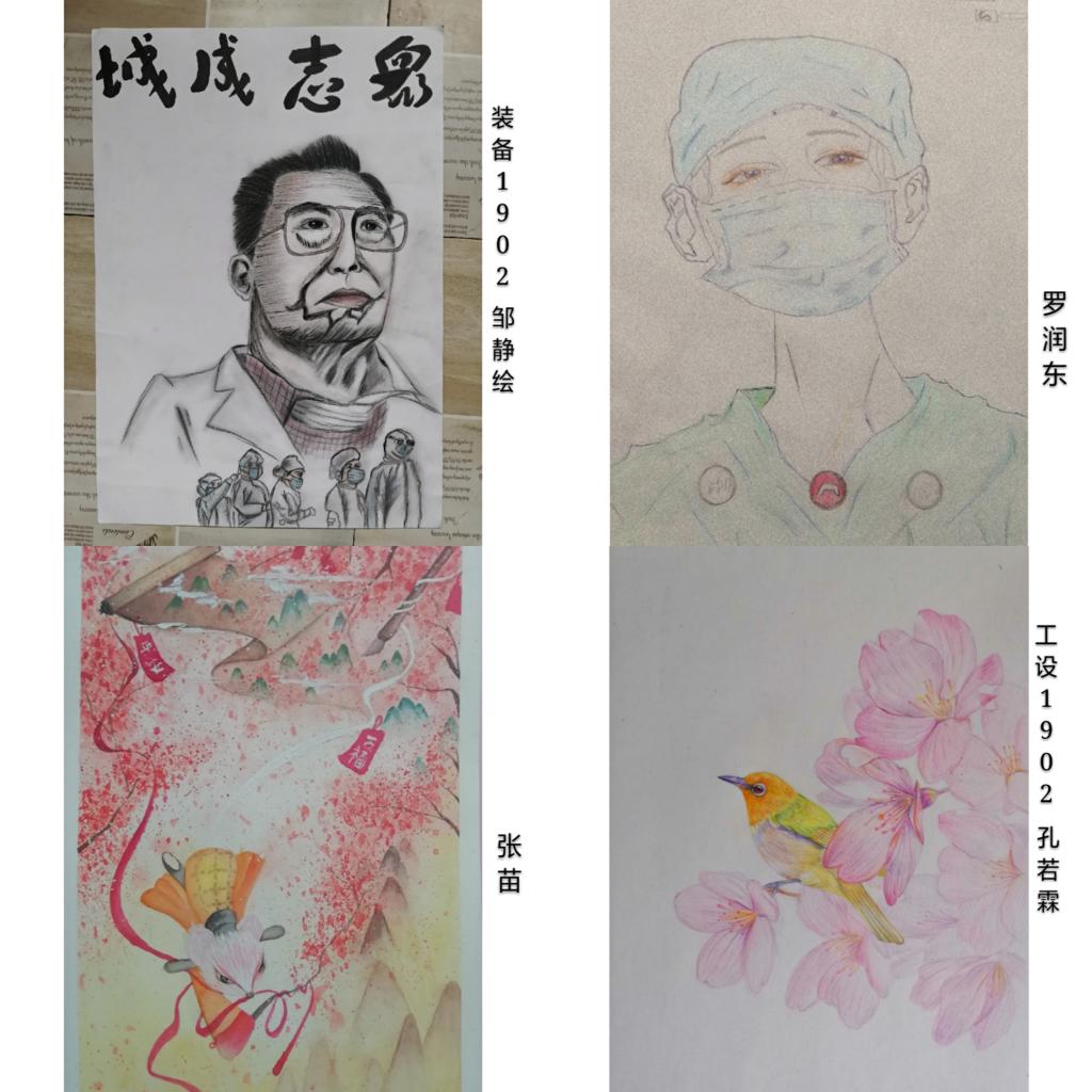 世上沒有從天而降的英雄,只有挺身而出的凡人。此次書畫作品中有最美逆行者們高大美麗的身影,有基層工作者們的默默奉獻,有千千萬萬人民大眾的團結(jié)友愛,有同學們對抗疫的昂揚斗志和祈愿。每一個落筆都是一聲祈禱,每一個畫面都是一顆熾熱的心!