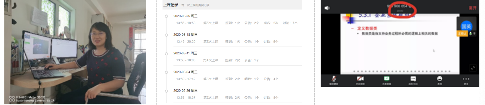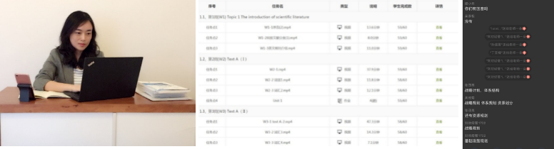 本學期常靜老師主講信管專業(yè)17級兩個班《信息管理專業(yè)英語》和《信息系統(tǒng)分析與設(shè)計》兩門課程。針對不同課程教學特點以及網(wǎng)絡教學資源的情況,她分別設(shè)計了“課程管理平臺+錄制課程”以及“課程管理平臺+網(wǎng)絡優(yōu)質(zhì)教學資源”的教學模式。經(jīng)過第一周的教學實踐同時積極與學生交流教學效果,及時總結(jié)線上教學經(jīng)驗,調(diào)整原有教學方式為“課程管理平臺+網(wǎng)絡教學資源/自錄課程+騰訊課堂”的教學模式,充分發(fā)揮各教學手段的優(yōu)勢:(1)利用課程管理平臺對教學內(nèi)容按課時進行整理與發(fā)布;每課時視頻學習結(jié)束后布置涵蓋當堂知識點的測驗檢測學習效果;發(fā)布批閱章節(jié)作業(yè);學情的統(tǒng)計與分析。(2)依據(jù)網(wǎng)絡資源情況選擇網(wǎng)上優(yōu)質(zhì)教學資源或自錄課程引導學生進行知識點的學習.(3)通過騰訊課堂定期對已學知識點進行梳理總結(jié)及作業(yè)點評。實現(xiàn)了在線教學的留痕管理,支持各類教學過程的回放,便于學生在網(wǎng)絡不穩(wěn)定時的學習和復習,保證教學質(zhì)量可控;同時利用在線教與學中的各種互動數(shù)據(jù)的采集和分析,通過科學有效的過程性評價,激勵和引導學生學習。除因課制宜及時調(diào)整教學方式外,常老師還結(jié)合抗擊疫情契機,豐富線上教學案例對授課內(nèi)容進行精心設(shè)計。針對疫情期間大量新聞報道知名學術(shù)期刊發(fā)表病毒研究成果,引導學生了解科技文獻,熟悉科技英語的特點及重要性。同時鼓勵學生結(jié)合課程知識將各地使用的疫情防控信息系統(tǒng)作為案例,思考信息系統(tǒng)與管理決策的關(guān)系,加深對課程知識點及信管專業(yè)的認知。