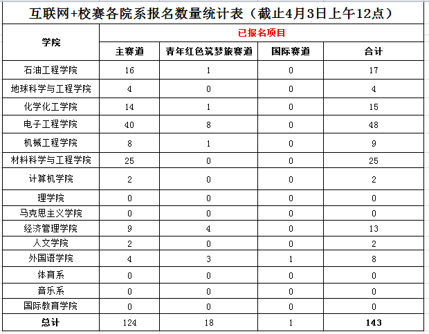 數(shù)據(jù)來源:2020年“粵嵌杯”西安石油大學(xué)“互聯(lián)網(wǎng)+”大學(xué)生創(chuàng)新創(chuàng)業(yè)大賽報(bào)名數(shù)據(jù)統(tǒng)計(jì)