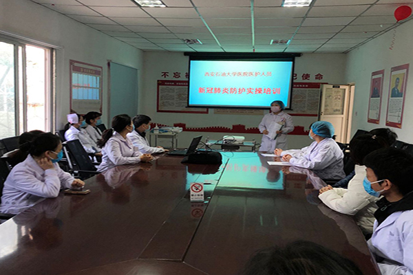 西安石油大學醫(yī)院開展醫(yī)護人員新冠肺炎防護實操培訓