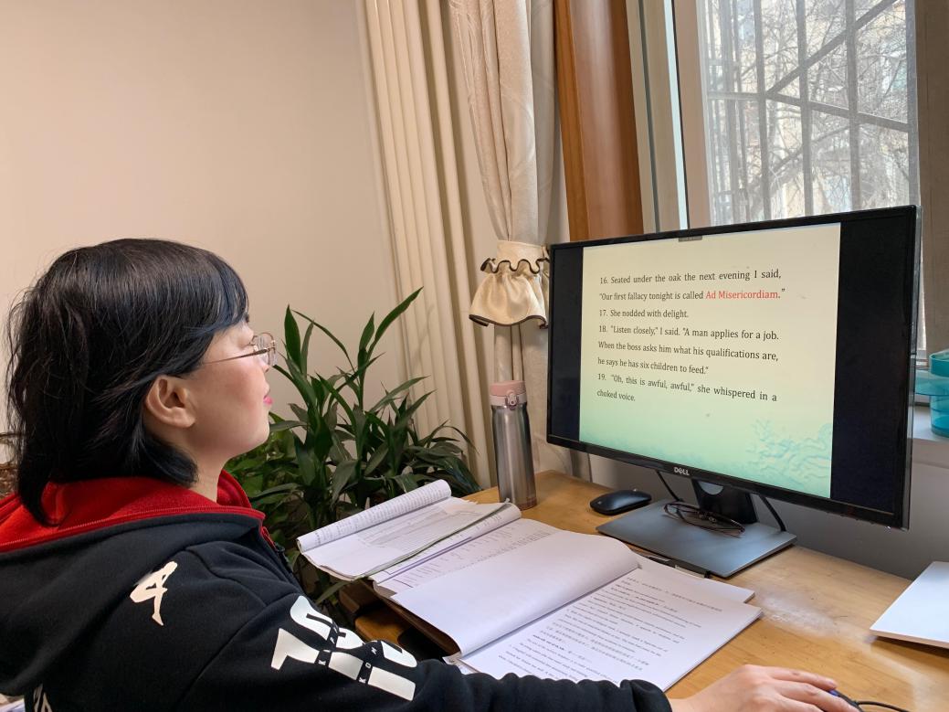 武絨老師說(shuō):“懷著惴惴不安的心情終于結(jié)束了新學(xué)期的第一次網(wǎng)絡(luò)授課!慶幸的是一切順利!騰訊會(huì)議提供了一個(gè)近乎實(shí)體課堂的語(yǔ)音互動(dòng)平臺(tái),出乎意料地感覺(jué)學(xué)生比在實(shí)體課堂更積極地參與課堂活動(dòng)!A new teaching and learning experience!”