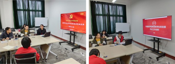 大學(xué)外語教學(xué)一部黨支部書記葛麗、大學(xué)外語教學(xué)二部黨支部副書記畢瑩、英語系教師黨支部書記陳武、俄語系教師黨支部書記孫婷、翻譯系黨支部書記高鵬鵬和英語系學(xué)生黨支部書記張帆圍繞學(xué)校黨支部工作標準和評價指標體系,聚焦“七個有力”,重點就黨支部“不忘初心、牢記使命”主題教育、“兩學(xué)一做”學(xué)習教育常態(tài)化制度化、 “三會一課”、在教學(xué)科研工作戰(zhàn)斗堡壘作用和黨員先鋒模范作用發(fā)揮情況等進行了匯報。