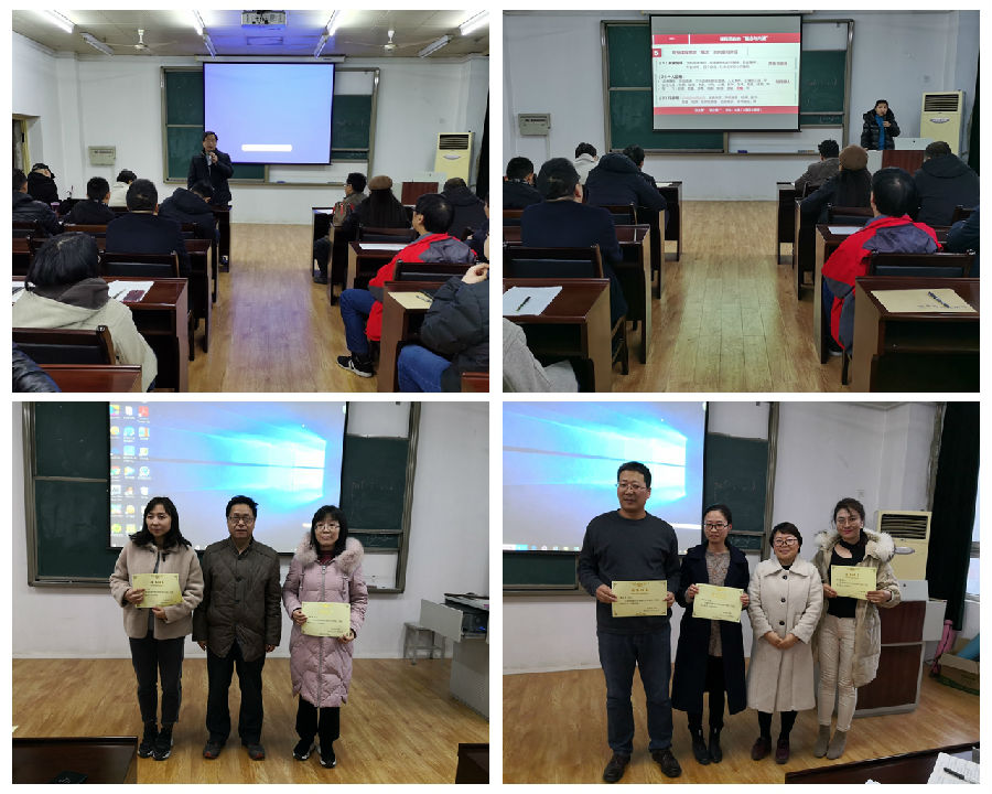 學(xué)院領(lǐng)導(dǎo)為榮獲2019年度學(xué)院創(chuàng)新課堂講課比賽的六位老師頒發(fā)榮譽(yù)證書(shū)并表示祝賀。網(wǎng)絡(luò)工程系教師白俊卿做《專業(yè)課程融入思政工作的理念與方法》專題報(bào)告,報(bào)告從課程思政的“概念與內(nèi)涵”和專業(yè)課程融入思政工作的理念與方法兩方面展開(kāi),并結(jié)合個(gè)人教學(xué)工作實(shí)例進(jìn)一步說(shuō)明教育工作者加強(qiáng)專業(yè)課程融入思政工作理念的重要性。