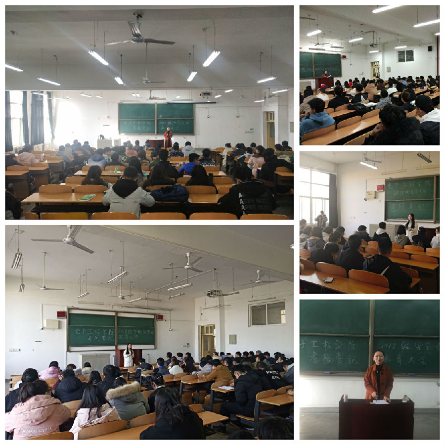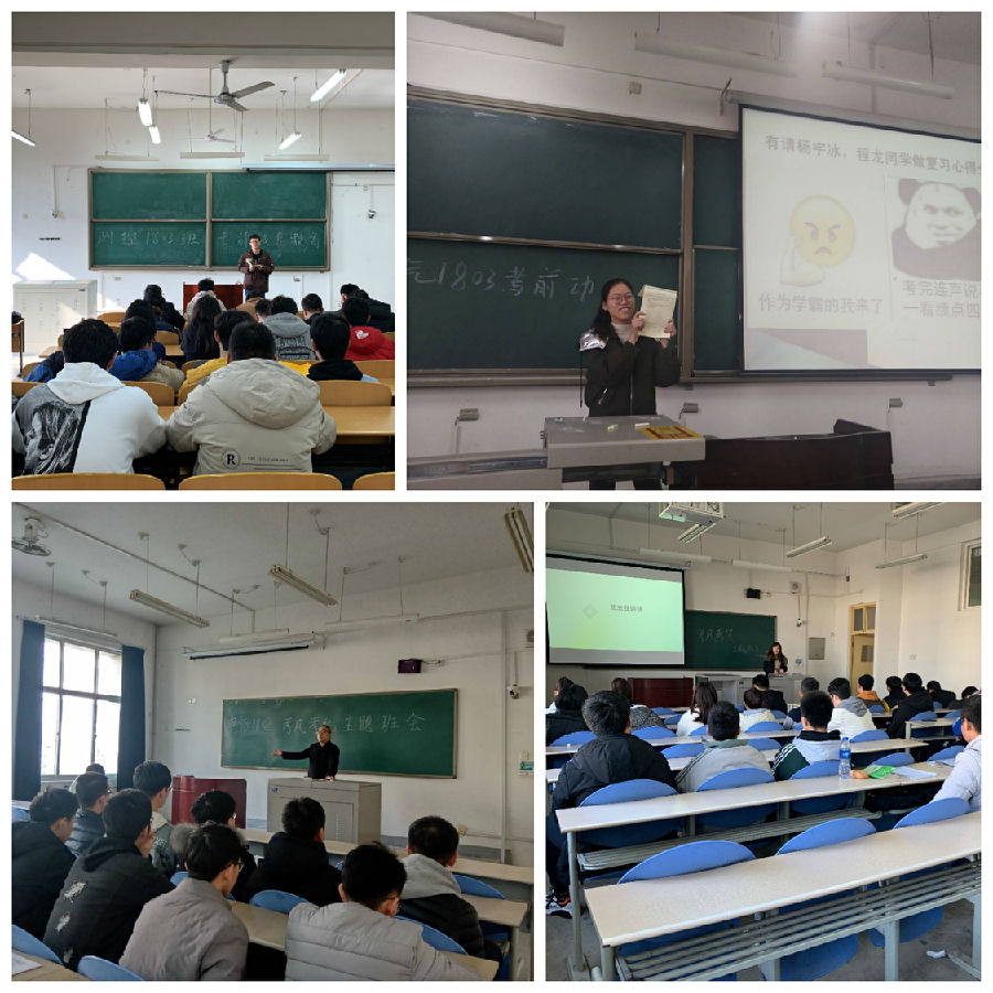 系列活動(dòng)之推進(jìn)學(xué)風(fēng)考風(fēng)專業(yè)大會(huì)。學(xué)院2018級(jí)五個(gè)專業(yè)分別召開專業(yè)大會(huì),會(huì)議由學(xué)院2018級(jí)輔導(dǎo)員錢宇航主持,她首先結(jié)合歷史故事及現(xiàn)實(shí)事例向?qū)W生們講述誠(chéng)信做人的重要性以及失信的危害。隨后,錢老師對(duì)考試紀(jì)律規(guī)定,違紀(jì)處分管理規(guī)定等方面的內(nèi)容做了詳細(xì)介紹,并通報(bào)了近年來因作弊而受處分的學(xué)生情況,讓學(xué)生們深刻認(rèn)識(shí)到違反校規(guī)校紀(jì)對(duì)自身發(fā)展的影響。最后,錢老師分專業(yè)請(qǐng)安全委員代表向同學(xué)們介紹假期安全注意事項(xiàng),并叮囑學(xué)生們要詳細(xì)填寫寒假離返校登記表,高高興興回家去,平平安安返校來。