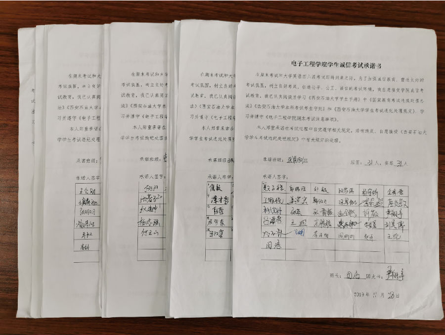 系列活動(dòng)之簽署誠(chéng)信考試承諾書。為進(jìn)一步增強(qiáng)學(xué)生誠(chéng)信意識(shí),將誠(chéng)信考試落到實(shí)處。各班通過組織學(xué)生簽署誠(chéng)信考試承諾書這一儀式,確保將考試相關(guān)紀(jì)律要求傳達(dá)給每一名同學(xué),要求同學(xué)們謹(jǐn)記承諾內(nèi)容,克服僥幸心理,認(rèn)真?zhèn)淇?,自覺抵制作弊行為。
