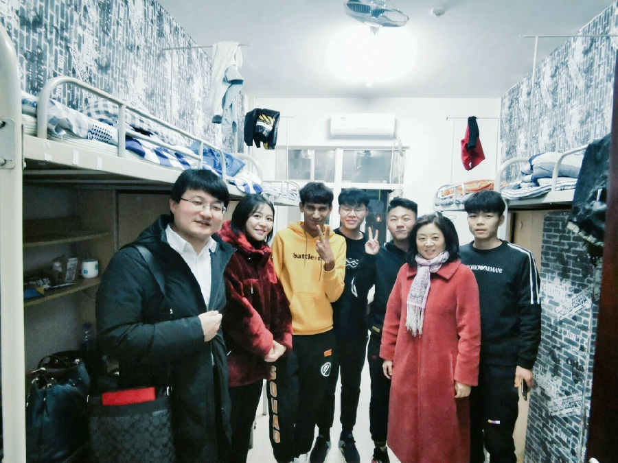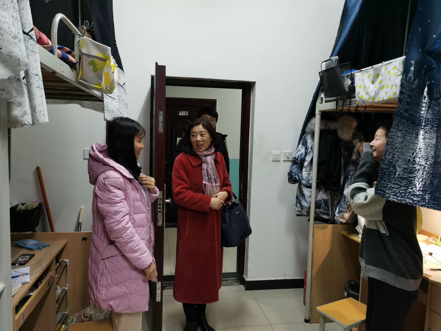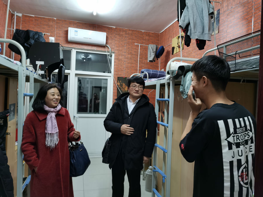 走訪中,畢軼慧老師及各年級輔導員再三囑咐同學們注意防寒保暖、樹立安全意識、積極備考、誠信應考,了解了同學們寒假回家的購票情況。在少數(shù)民族學生吐爾孫·頁合牙宿舍中,畢軼慧老師期許同學們珍惜大學時光,做好生涯規(guī)劃,積極樹立“民族團結一家親”的理念。受訪同學向老師們匯報了自身學習生活情況,對學院領導和老師們一年來的關心幫助表示感謝,并邀請老師們合影留念。