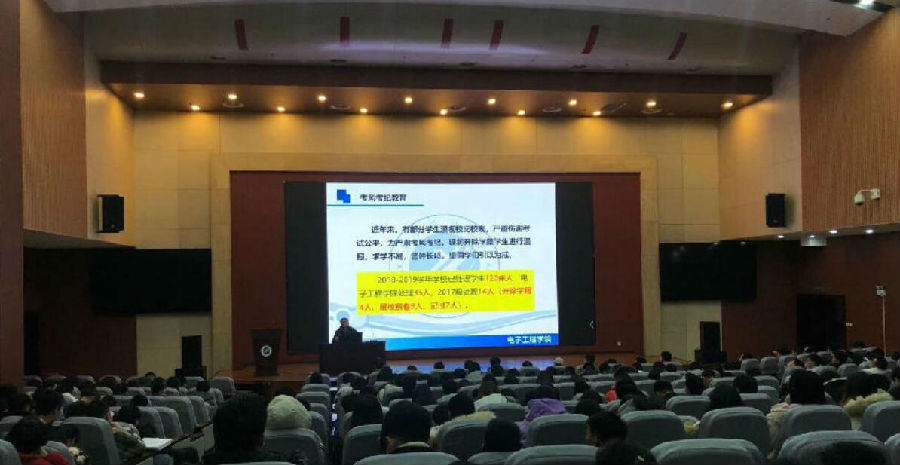 系列活動(dòng)之召開學(xué)風(fēng)考風(fēng)推進(jìn)會(huì)議。電子工程學(xué)院2017級(jí)輔導(dǎo)員高建邦分專業(yè)對(duì)學(xué)院2017級(jí)學(xué)生召開學(xué)風(fēng)考風(fēng)推進(jìn)會(huì)議。高建邦老師首先對(duì)學(xué)生進(jìn)行誠(chéng)信教育,提高大學(xué)生的誠(chéng)信應(yīng)考意識(shí),引導(dǎo)青年學(xué)生牢固樹立守信光榮、失信可恥的道德觀念。隨后,高老師對(duì)考試紀(jì)律規(guī)定,違紀(jì)處分管理規(guī)定等方面做了詳細(xì)介紹,并通報(bào)了近年來因作弊處分的學(xué)生情況,讓同學(xué)們深刻認(rèn)識(shí)到違反制度對(duì)自身發(fā)展的影響。