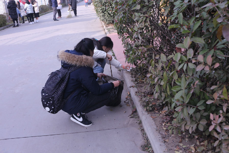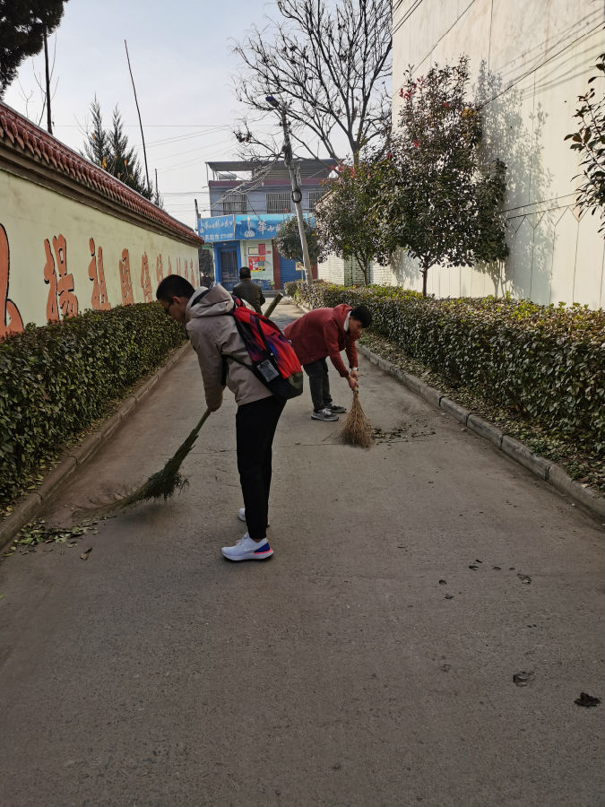 黃建禮老師首先與東索村村黨支部書記石海利進(jìn)行了對接交流,并對具體義務(wù)勞動(dòng)任務(wù)進(jìn)行了安排部署。全體師生分為八組對村里的主要街道進(jìn)行衛(wèi)生清理,大家手持垃圾袋、掃把、鐵锨等清潔工具沿著村道對住戶房前屋后的垃圾、雜草、衛(wèi)生死角等進(jìn)行了清理。在勞動(dòng)過程中,同學(xué)們配合默契,熱情高漲,得到了現(xiàn)場群眾的贊許。